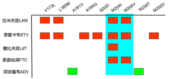 圖,NAs耐藥位點,均與204位的YIDD與YVDD突變相關
